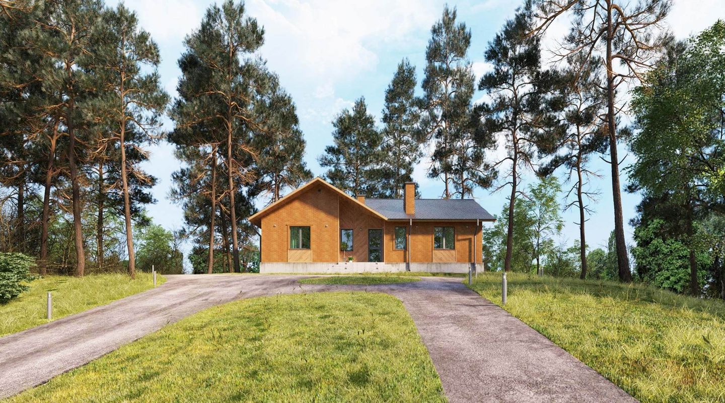 № 5 Одноэтажный дом с террасой. Площадь дома-132 кв. м. Одноэтажный дом квадратный в плане, простой по планировочному решению. Этот дом отлично подходит для проживания семьи из 4-х и более человек,а также для комфортного размещения гостей. Проект дома предусматривает три спальни и два сан.узла. Стены выполнены из керамзитобетонного блока с утепление минеральной ватой. Внешний фасад дома отделан облицовочным кирпичом . Высота этажа 3 метра. Строительные материалы подобраны с учётом доступности по цене и наличию на любом строительном рынке.