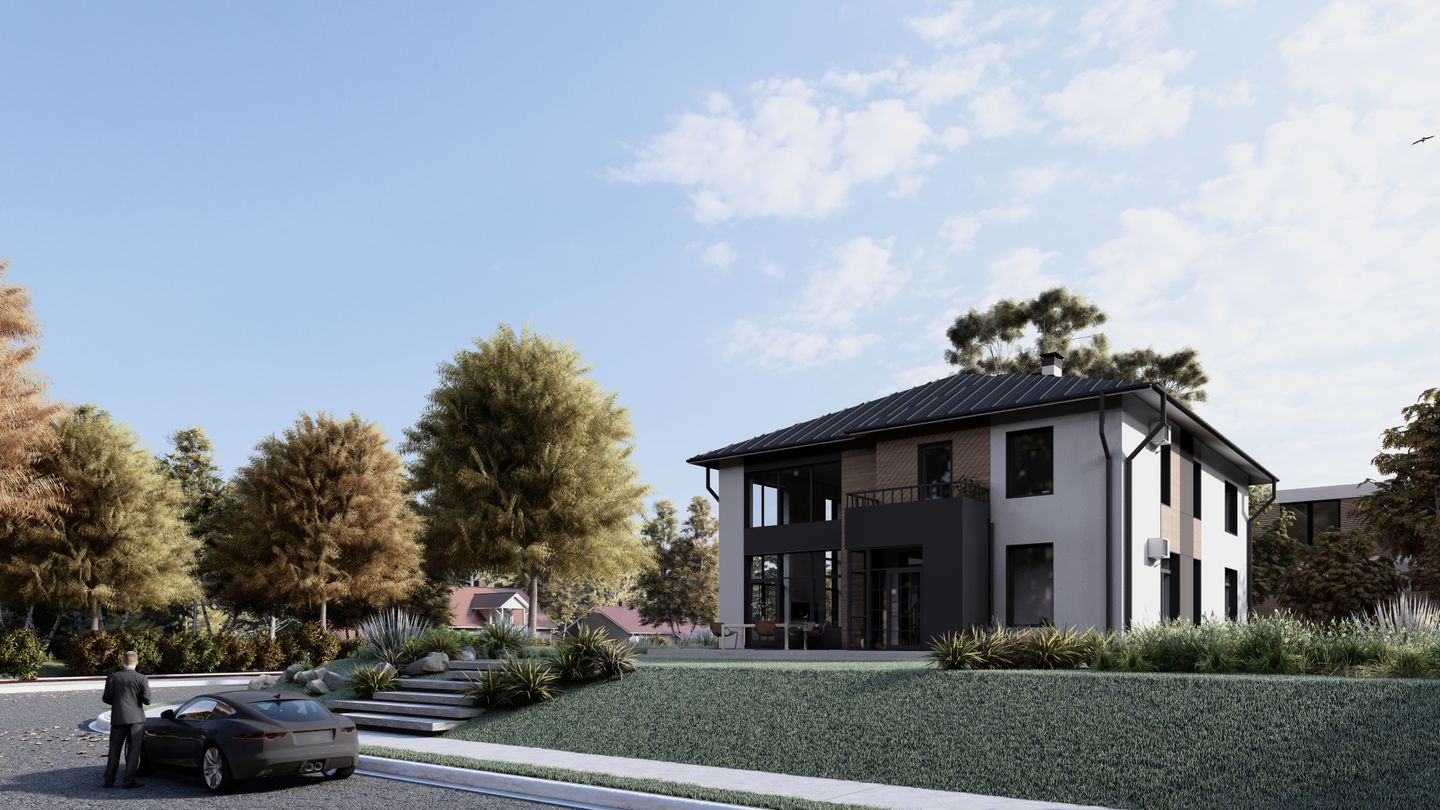 Проект жилого дома, расположенного в Подмосковье, представляет собой двухэтажное здание с вторым светом и большими витражными окнами. На первом этаже дома находится кухня-гостиная, гардероб, гостевая спальня, туалет, прачечная с кладовой, котельная и мастерская хозяйки. На втором этаже расположены две детские комнаты, мастер спальня и туалет. В доме предусмотрены все необходимые удобства для комфортного проживания. Кухня-гостиная позволяет проводить время с семьей и друзьями, а также готовить вкусные блюда. Гардероб обеспечивает удобное хранение одежды и обуви. Гостевая спальня предназначена для размещения гостей, которые могут остаться на ночь. Туалет на первом этаже обеспечивает удобство для всех членов семьи. Прачечная с кладовой позволяет хранить и стирать белье. Котельная обеспечивает отопление дома, а мастерская хозяйки - место для ее хобби и увлечений. На втором этаже дома расположены две детские комнаты, где дети могут играть, учиться и отдыхать. Мастер спальня предназначена для отдыха и сна хозяев дома. Туалет на втором этаже обеспечивает удобство для всех членов семьи. В целом, проект жилого дома в Подмосковье предлагает комфортное и функциональное пространство для проживания семьи. Большие витражные окна обеспечивают хорошее естественное освещение и создают уютную атмосферу в доме.