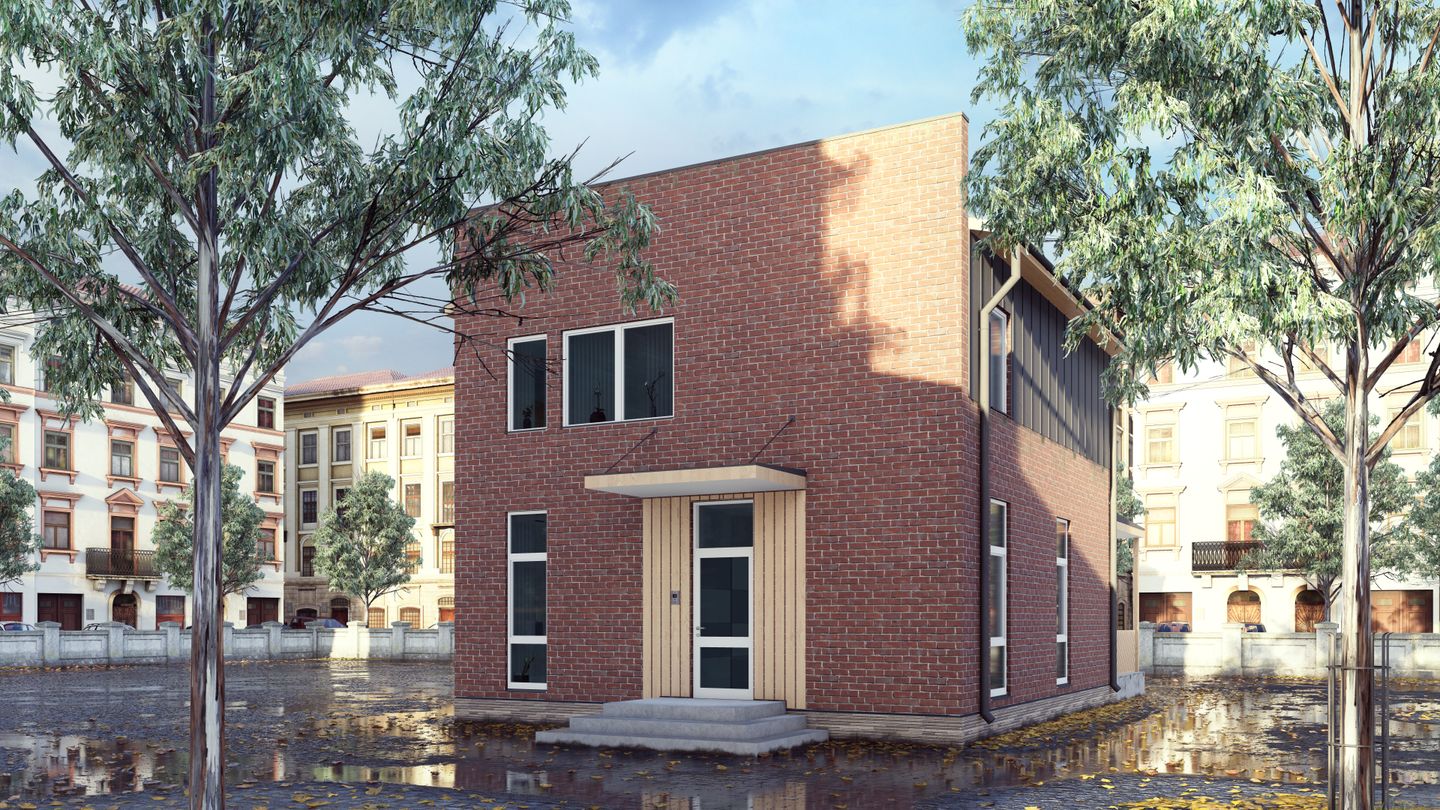 Типовой проект маленького жилого дома с компактной планировкой, идеально подходящий для комплексной застройки на маленьких земельных участках. На первом этаже расположены кухня-гостиная, отдельная спальня, котельная и санузел. На втором этаже находятся три спальные комнаты и гардеробная. Проект предусматривает несколько вариантов отделки фасада в различных стилях и цветовых решениях.