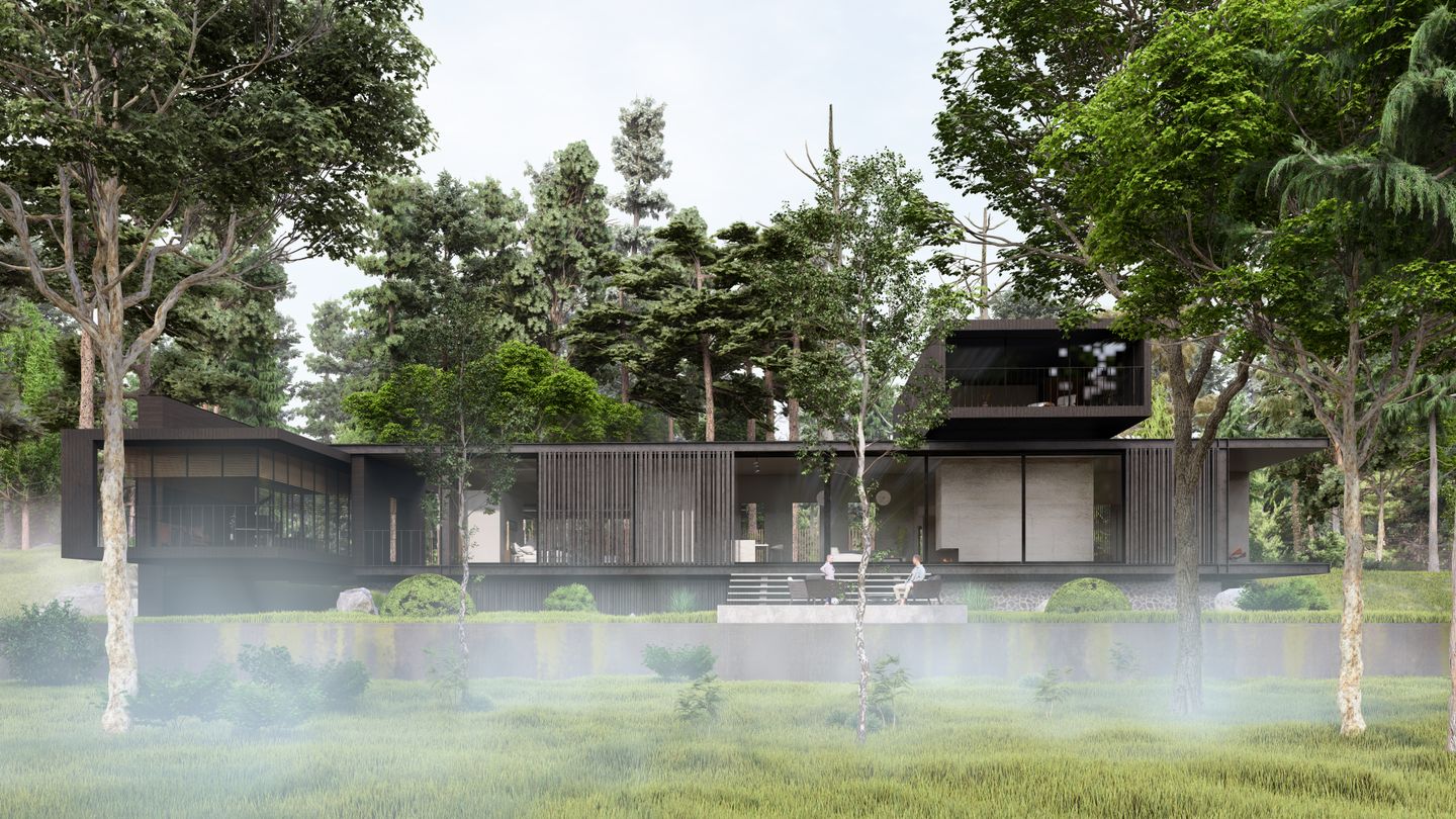 Этот дом представляет собой современное архитектурное решение, гармонично вписывающееся в окружающую природу Алтайской тайги. Его минималистичный дизайн с большими стеклянными окнами позволяет наслаждаться видами на лес и создает ощущение единства с природой. Дом окружен зеленью и деревьями, что создает атмосферу уединения и спокойствия. Это идеальное место для тех, кто ценит природу и современный комфорт.